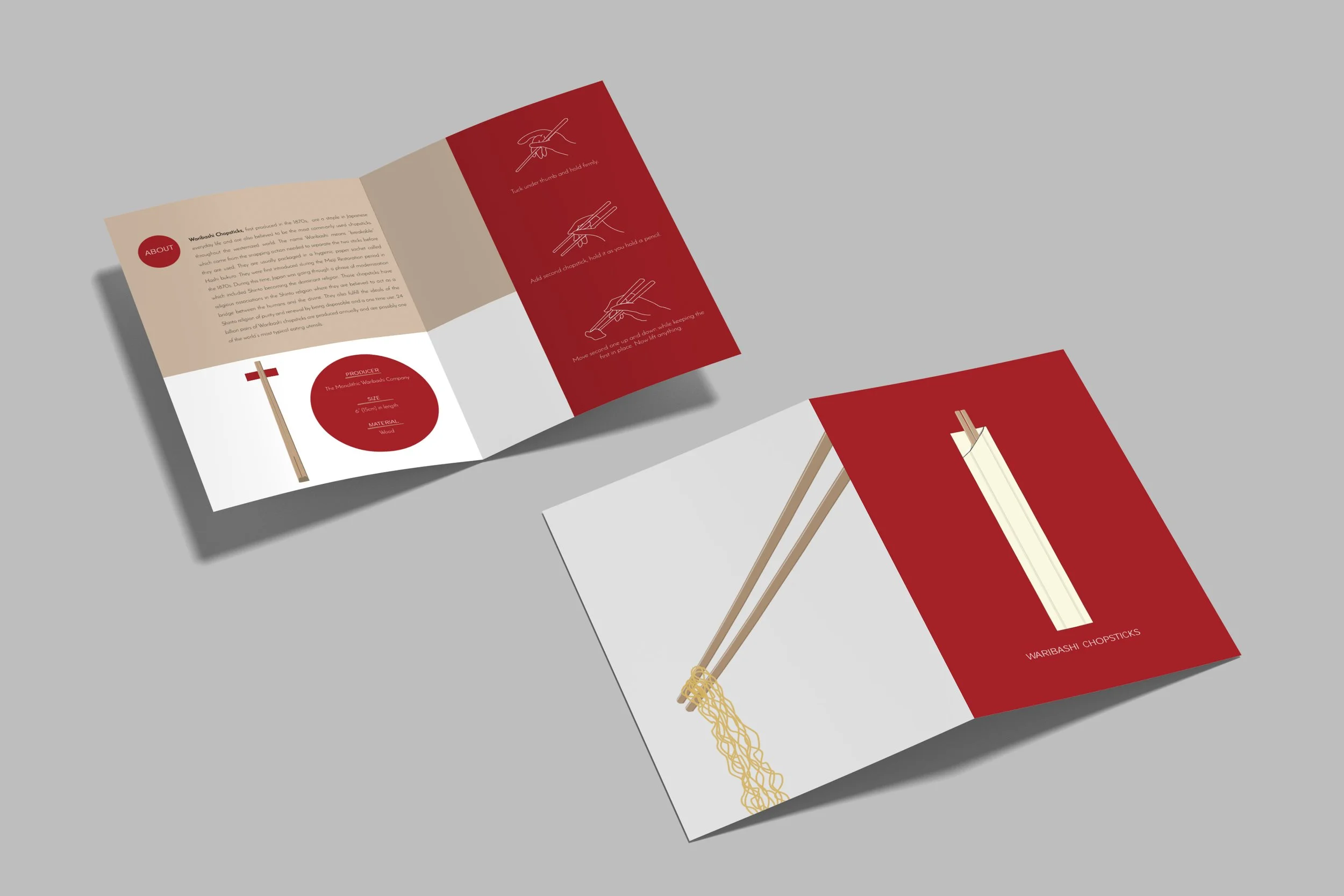 Crafted as a half-fold brochure, this piece delves into the rich history and practical usage of Waribashi Chopsticks. Drawing inspiration from the chopsticks' cultural significance, the design embodies a minimalist aesthetic, employing colors that resonate with their cultural heritage.